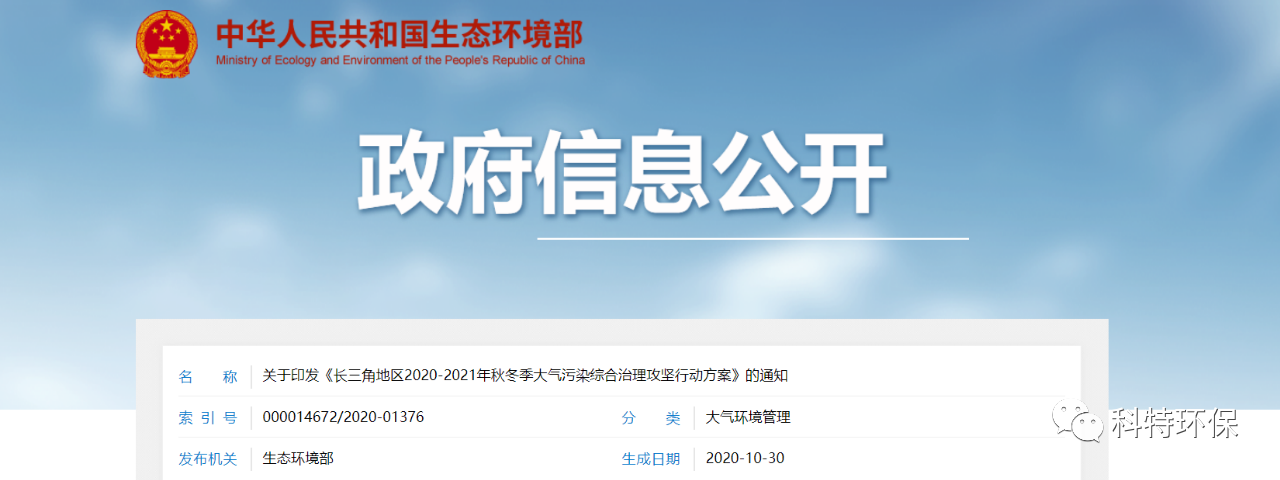 生態(tài)環(huán)境部、國家發(fā)展和改革委員會、工業(yè)和信息化部等10部門與上海、江蘇、浙江、安徽等4省(市)人民政府聯(lián)合印發(fā)《長三角地區(qū)2020-2021年秋冬季大氣污染綜合治理攻堅行動方案》(以下簡稱《行動方案》)